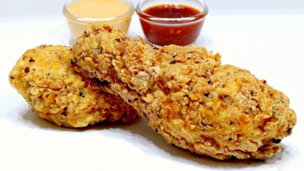 - اغمسي قطع الدجاج في اللبن والبيض، ثم اغمسيه في خليط الدقيق والتوابل.