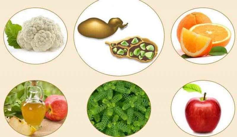 حيث يساعد البكتين وهو أحد مكونات الفواكه الحمضية، في التخلص من ألم المرارة المرتبط بالانسداد أو الحصوات، كما أن عصير الليمون يتمتع بفعالية شديدة، وينصح بتناول عصير من 4 ليمونات على معدة خالية، يوميا لمدة أسبوع، ويتبع ذلك بكوب من الماء.