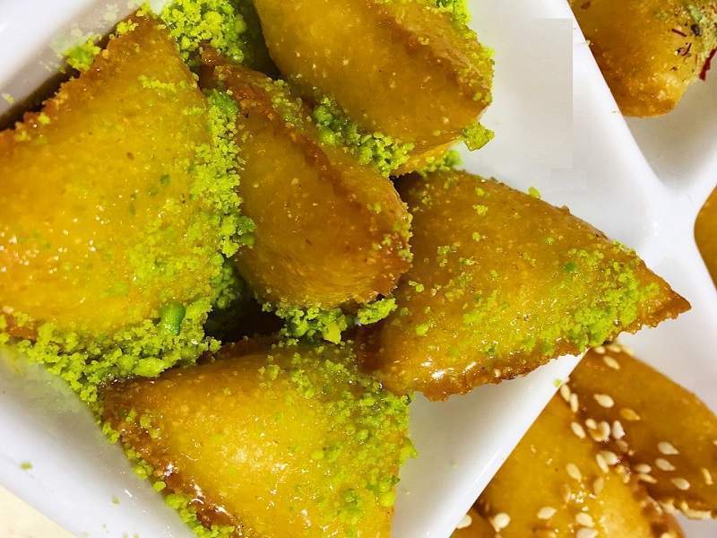 - مجرد أن يصبح لون المثلثات ذهبيا، ارفعيها من الزيت واسقيها بالشربات البارد، ثم قدميها في طبق التقديم وبالهناء والعافية.