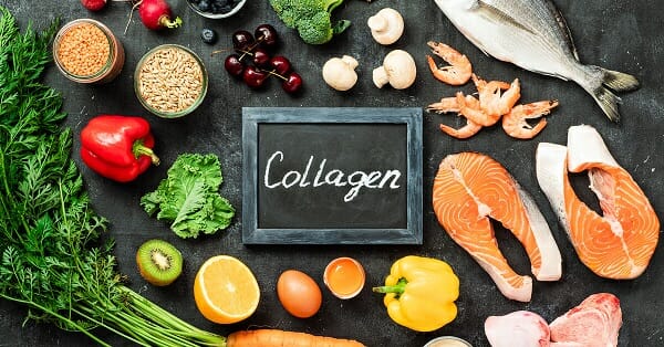 ثمَّة أطعمة من شأنها تحفيز إنتاج الكولاجين في الجسم، وأطعمة أخرى تحتوي على الكولاجين بنسبة كبيرة، والتي تأتي على النحو التالي: