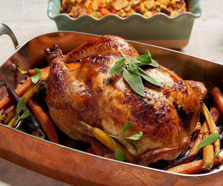 - بعد أن تنضج الدجاجة نخرجها من الفرن، ثم نتركها داخل الكيس إلى أن تهدأ قليلاً.