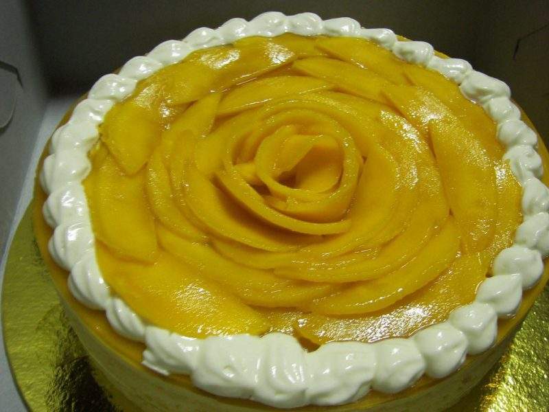 - يمكنك تزيين قالب الكيك قبل تقديمه من خلال تغطيته جميع جوانبه وسطحه بالكريمة، ووضع قطع المانجو عليه لإعطائه شكلا رائعا.