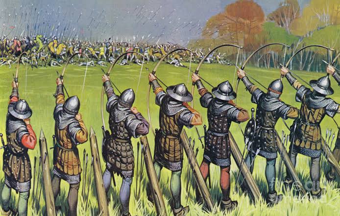 استخدم الجيش الإنجليزي تكتيكا جديدا في معركة أجينكور، حيث تخلّى رماة الأسهم عن أقواسهم فور إنهاء مهمتهم ببعثرة خطوط العدو، ومن ثم انضموا للقتال جنبًا إلى جنب مع المقاتلين بالسيوف والفؤوس.